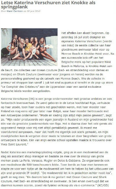 Nieuwsblad : Swimwear of Designer from Temse available in Beachclub 50 Cent